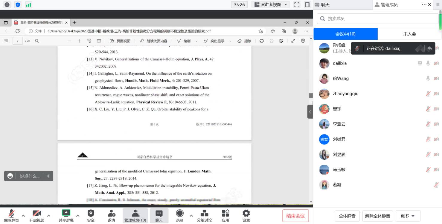 1月6日晚上,应看球直播 邀请,南京师范大学戴丽霞教授在线(腾讯会议)作了国家自科基金项目申报辅导讲座。讲座由看球直播 副院长孙成峰主持,足球比赛直播 自科基金申报教师聆听了讲座。