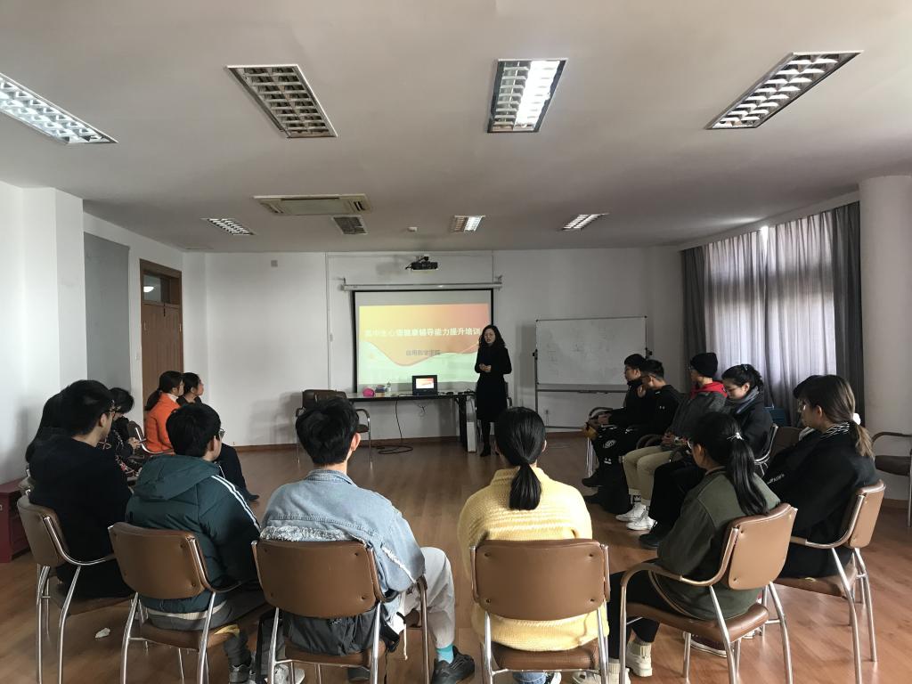 老师和班级心理委员对高中生和大学生进行心理健康辅导的能力。院学工系统老师、分团委心理部和各班心理委员参加了活动。
