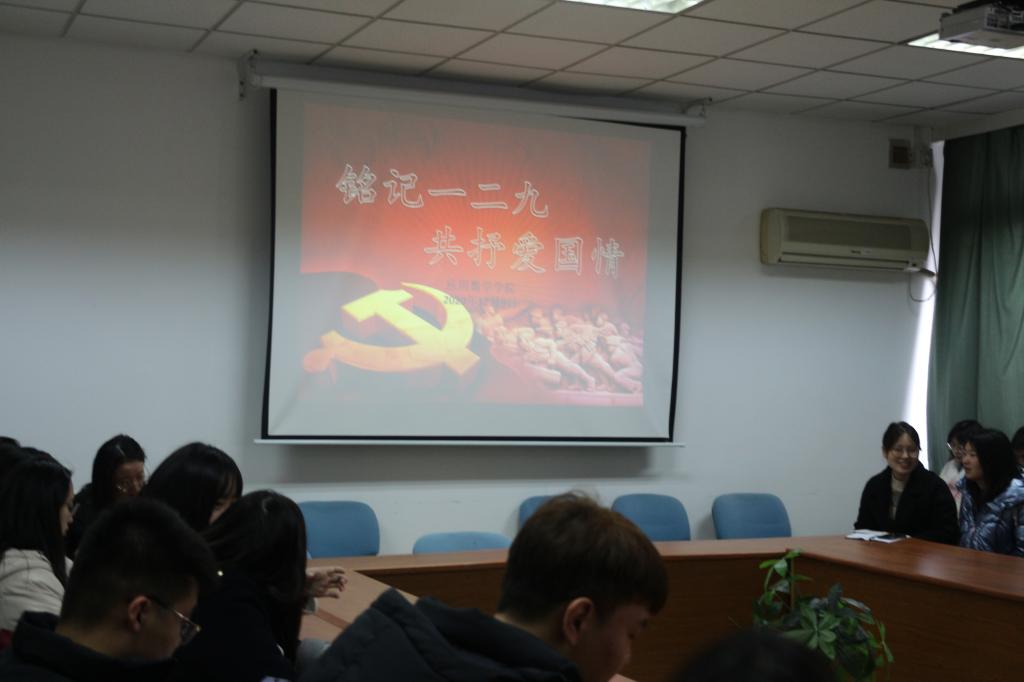 在仙林校区德业楼534室举办“铭记一二九 共抒爱国情“学生党员主题党日活动。本次活动由研究生党支部组织委员康雯宇同学主持,数院全体学生党员和发展对象参加了本次活动。