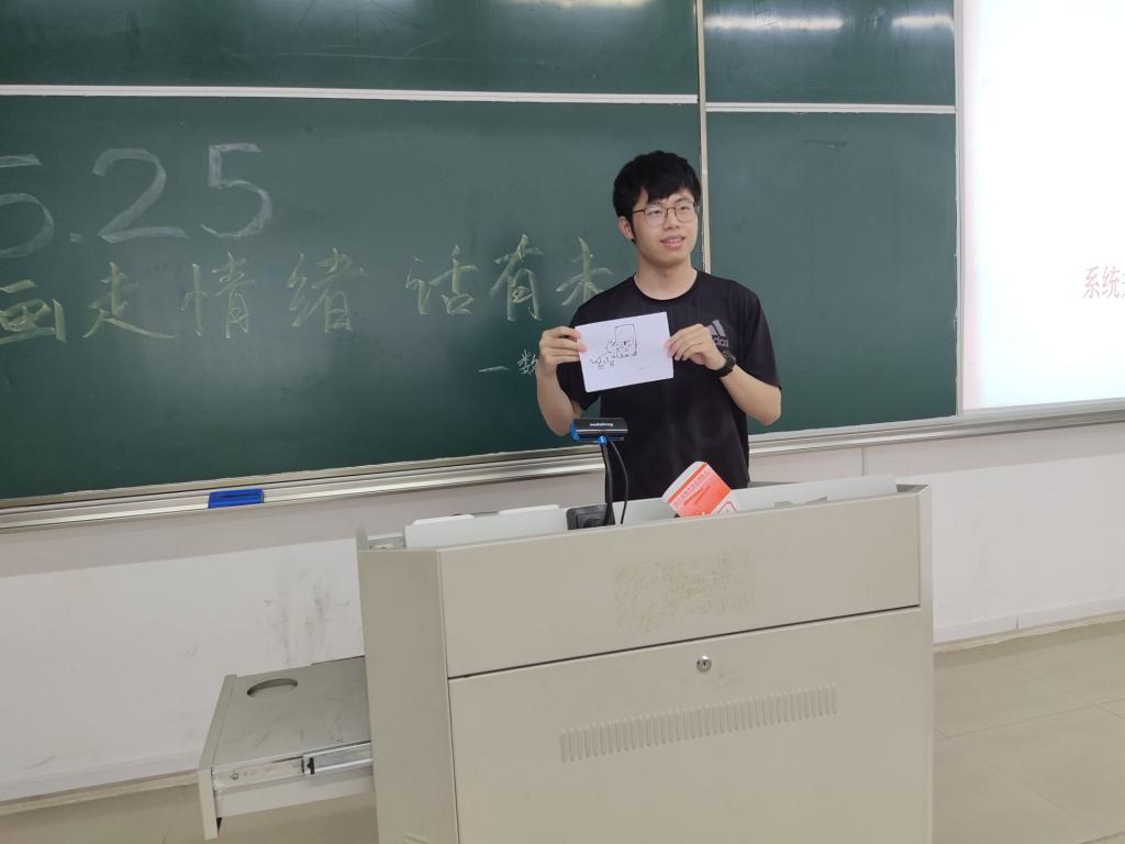 活动中,曹潇月同学向大家讲解了积极情绪的作用,并指出通过绘画投射可以让大家认识到自己当下情绪背后的深层次原因。接着,汪榆同学指引大家拿起手中的笔用自己喜欢的方式画起了自己的情绪。片刻的安静之后,大家纷纷分享起自己的画作。其中一位同学画了一只小猫、一面镜子,还有镜中的一只老虎。他说自己身子骨很弱,但他相信通过自己有计划的锻炼一定会拥有一个强壮的身体。汪榆附和道,他的画画出了他暂时处于弱小的状态,但他有一颗坚定而积极的心,他信任自己,现在也一定在努力地提升自己,展现出了一种积极向上的心态。通过汪榆同学的分析,大家开始进一步审视自己的画作,再一次感受自己目前所处的状态,小组内进行了相互分享并给予了话语支持。最后,曹潇月同学呼吁大家要树立正确的人生观、价值观和世界观,学会自我调控情绪,排除不良情绪,保持乐观的心态,让自己在愉悦的心境中度过每一天。