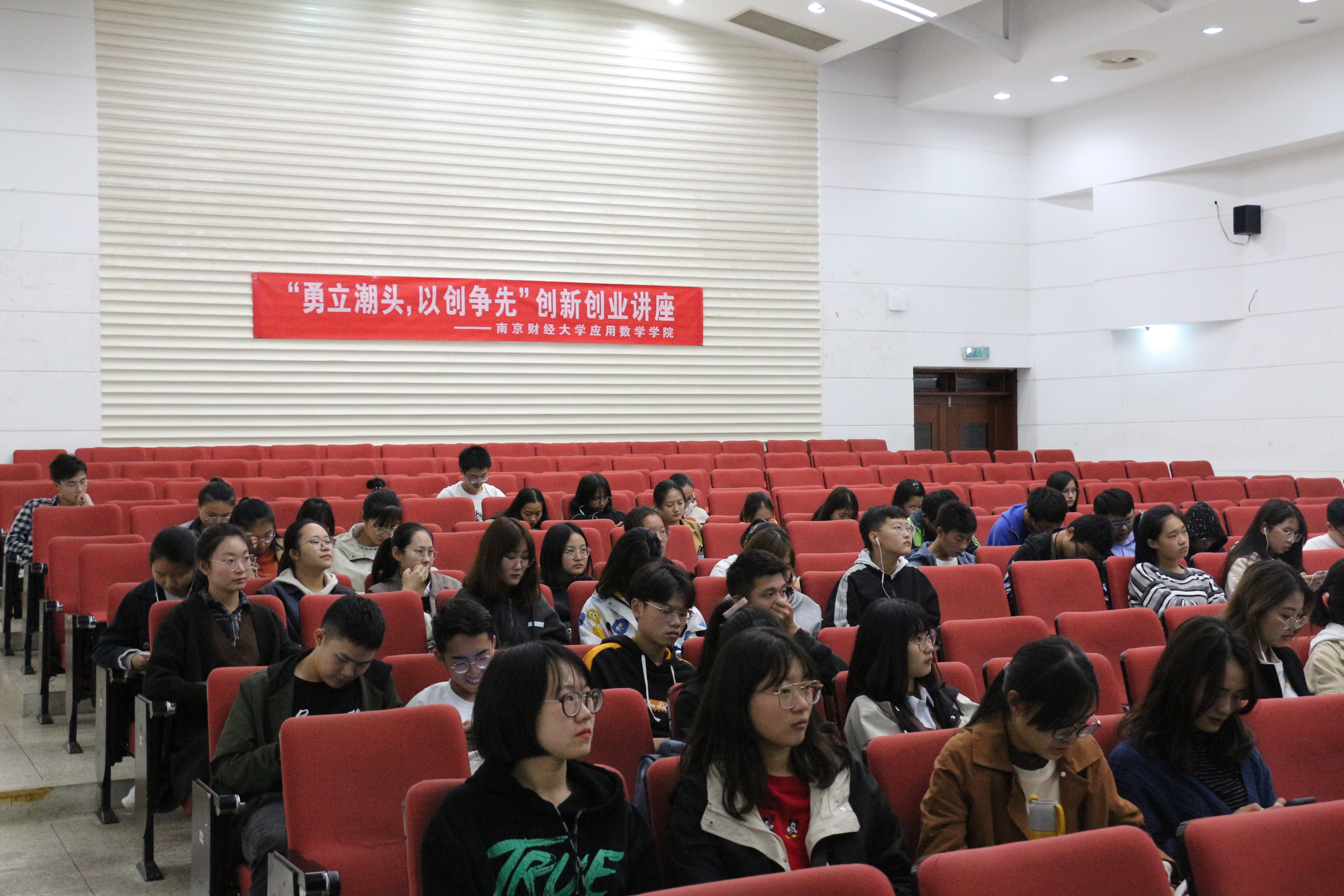 邀请,高顿教育高级讲师周昂学女士在仙林校区德经楼二楼报告厅为院大一新生作了题为“勇立潮头,以创争先”的创新创业主题讲座。