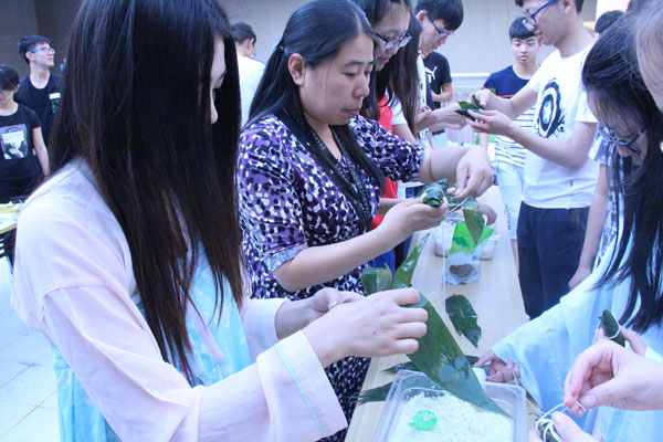 5月29日下午,足球比赛直播 在理工学科楼六楼举办“粽飘香,忆屈原”主题活动,足球比赛直播 部分师生参加了活动。本次活动共分三个环节:第一个环节是“挥毫泼墨”。身穿汉服的同学,伴着优雅的音乐,挥毫泼墨,书写端午主题的诗词。第二个环节是“开心粽情”。同学们和老师围在一起开心的包粽子,来自各地的同学用一样的粽叶包出了各具特色的家乡粽子。第三个环节是:“艾叶飘香”。现场分发了艾叶以驱蚊辟邪。