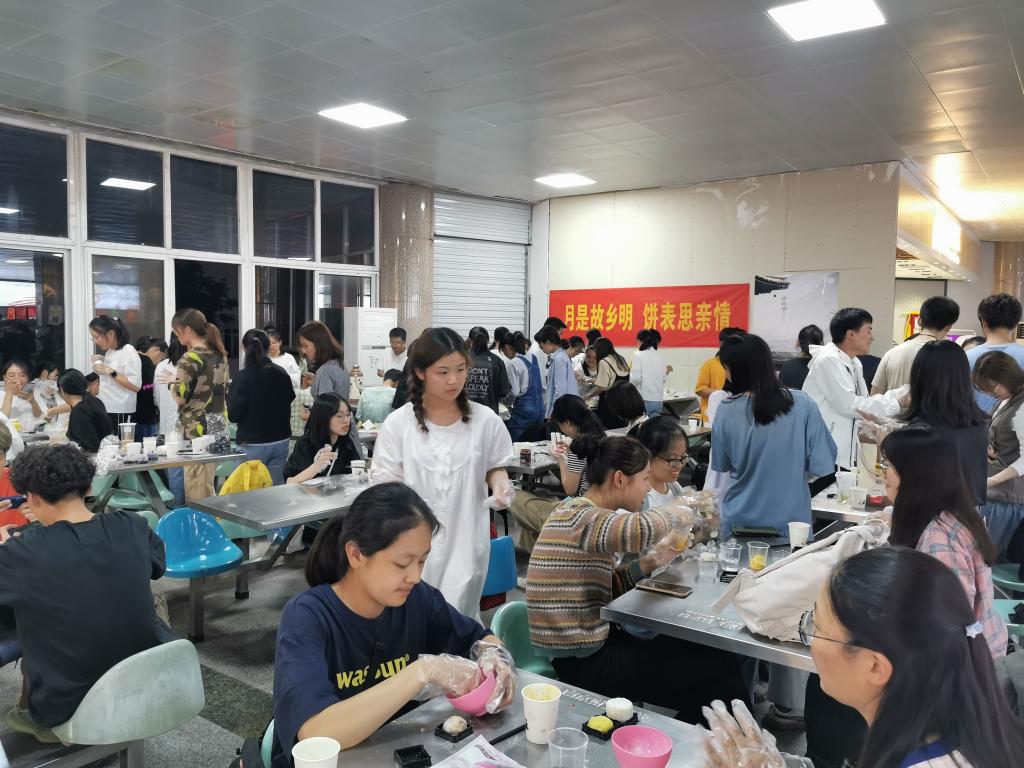 在仙林校区中苑餐厅二楼为新生举办了以“月是故乡明,饼表思亲情”为主题的中秋包月饼活动,2020级新生参加了活动。