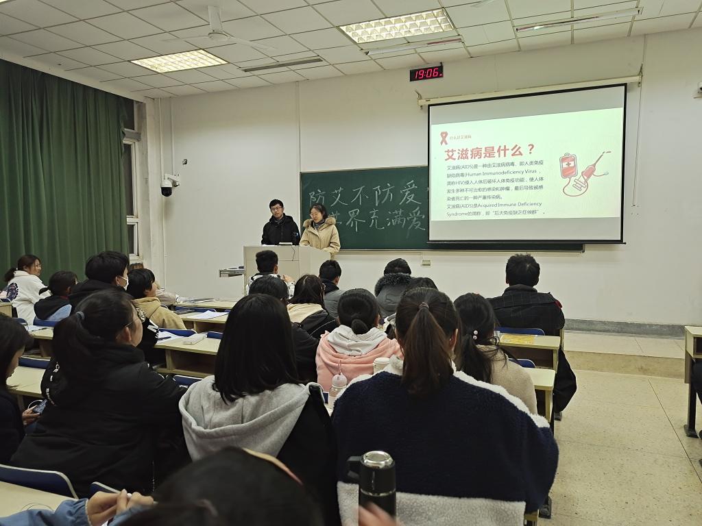今年12月1日是第33个“世界艾滋病日”,全世界预防艾滋病病毒新发感染的工作远远落后于既定目标,防治艾滋病任重道远,需要全社会的共同努力。这次宣讲会意在教育引导学生树立“每个人是自己健康的第一责任人”的理念,增强个人健康意识,帮助认识和杜绝传播艾滋病的高危行为。通过这次宣讲会,同学们了解了更多艾滋病的相关知识,更加认识到了艾滋病的严重性,每个人都应该行动起来,提高自我防范意识,积极预防艾滋病。