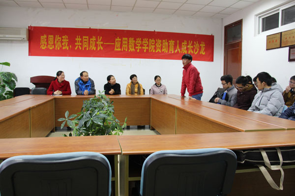 在仙林校区理工学科楼534会议室开展了“感恩你我,共同成长”资助育人成长沙龙感恩节主题活动。应用数学学党总支书记常根发、副书记张杰、辅导员卢艳梅、足球比赛直播