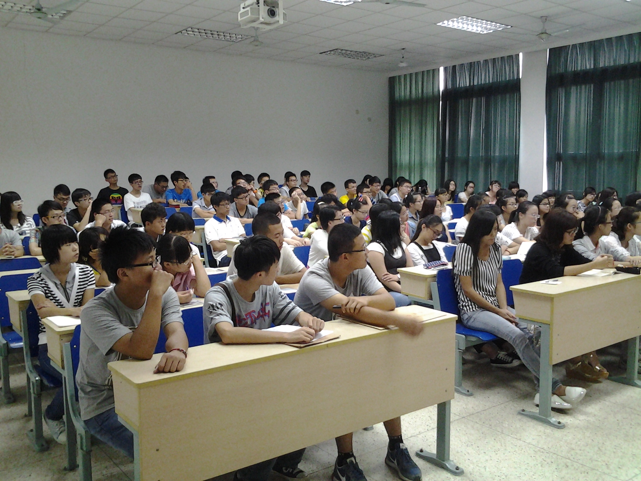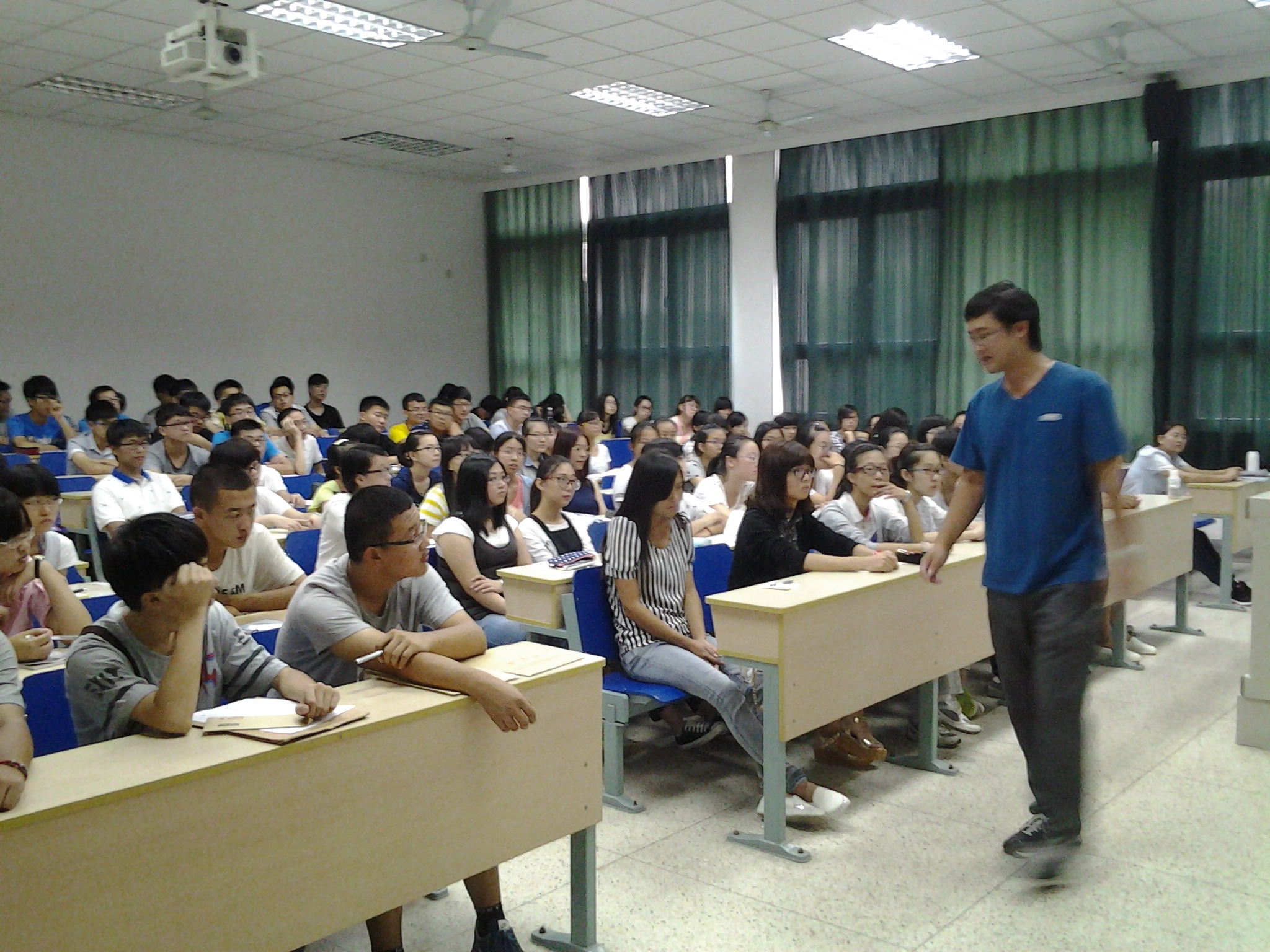 刘喜鹏辅导员走上了讲台。他以自己在大学时代的学习经历引入新生适应性的话题。刘老师的真实经历让同学们受益匪浅,他的关心更是溢于言表,让同学们感觉无比亲切。刘喜鹏辅导员不辞辛苦的向同学们讲述他对大学学习生活的理解与看法,汗水流下了他的面庞,浸湿了他的上衣,可他并不在意,依旧不停的对同学们讲解。