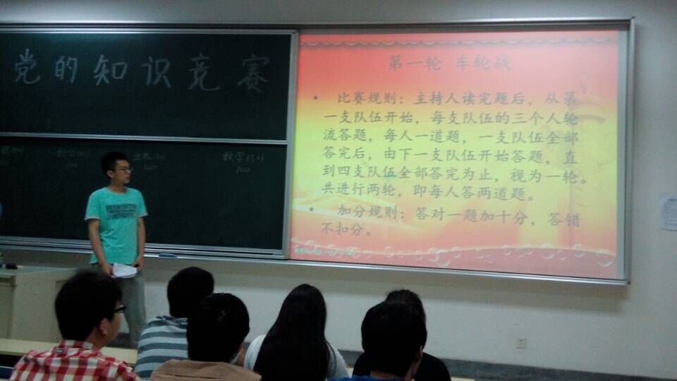 5月7日晚,由足球比赛直播 分团委,院学生会组织举办的党的知识竞赛在专四117举行。