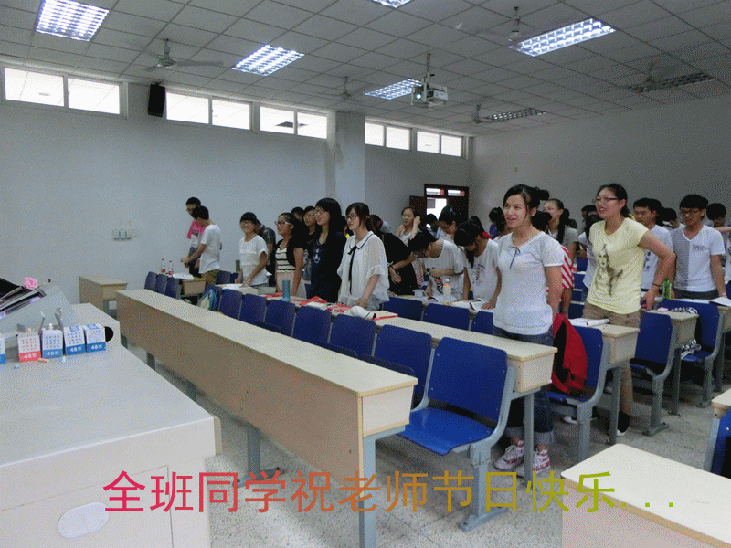 据了解,为了迎接教师节,院学生会还开展了其他多种形式的活动喜迎教师节。如:发送祝福贺卡、课前集体祝福老师等形式表达对老师真心的祝福。当全体学生站起来祝老师节日快乐的时候,张菁老师动情地说:“看到黑板上的祝福我已经很高兴了,没想到大家还用这样的方式,我真的很高兴,甚至有点激动了。今年是我当老师的第三个年头,但是却是我最难忘的教师节。谢谢你们大家的礼物和祝福。”张老师还称之为“理科生的浪漫”。