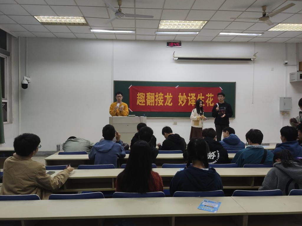 学生会文化传播中心文艺组在德业楼106教室开展主题为“趣翻接龙,妙译生花”的趣味英语交流活动。