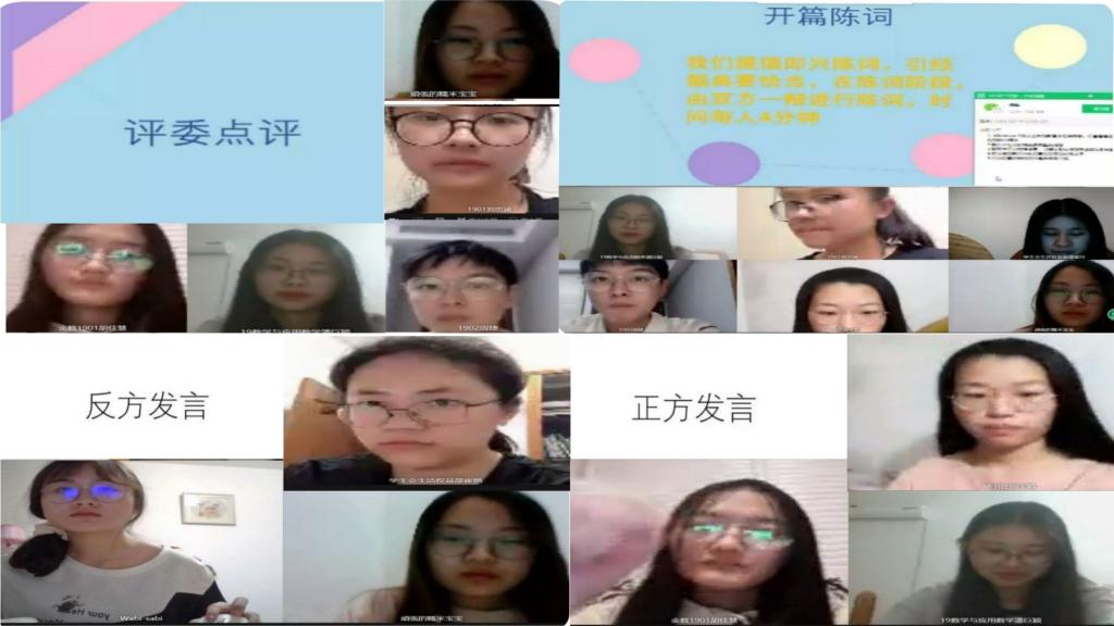 于5月27日举办了以“大学生参加课余劳动是否有利于成才”为题的线上辩论会,由金数1901、应数1901各派一支队伍参加比赛,并特别邀请院分团委书记孙晓飞老师担任评委。