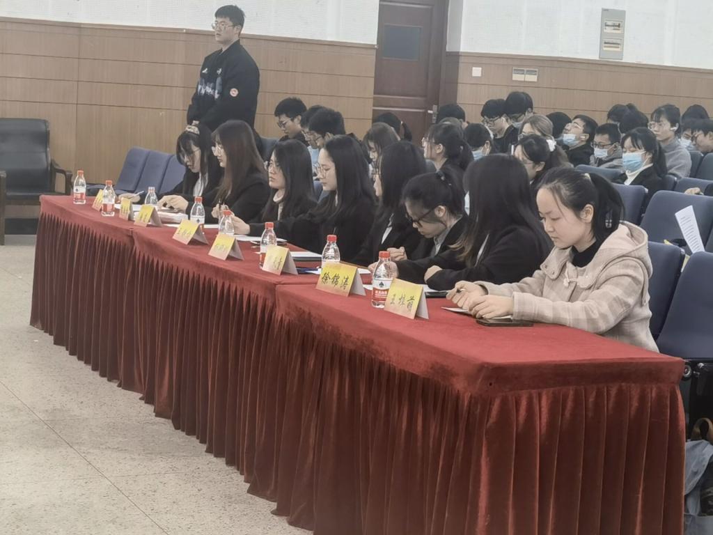 团委在仙林校区德济楼二楼报告厅开展了以“述往日光辉,启精彩新章”为主题的团支书双述双评大会,本次大会由秘书处宋焱博、张昕主持,国贸院团委副书记周天童、徐锦涛等八位评委、团委全体成员、21级全体成员、各年级团支书、宣传委员、组织委员,以及各团支部代表参加。
