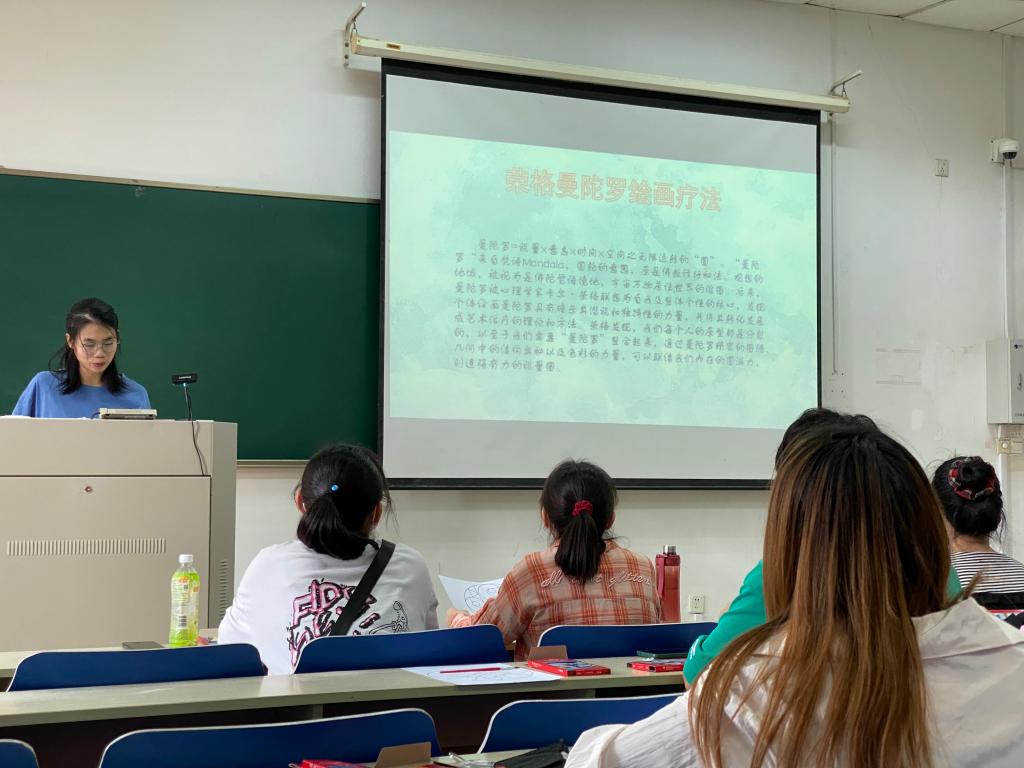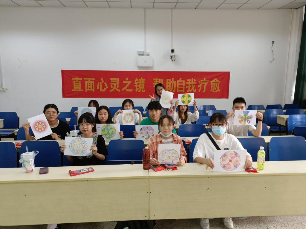 在德业楼110教室开展“直面心灵之镜,帮助自我疗愈”曼陀罗绘画活动。
