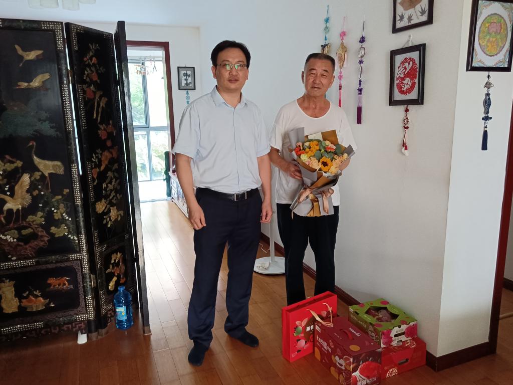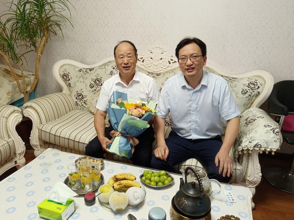 党总支书记殷建新和学生代表一行看望慰问生病教师、退休老领导及老教授,代表足球比赛直播