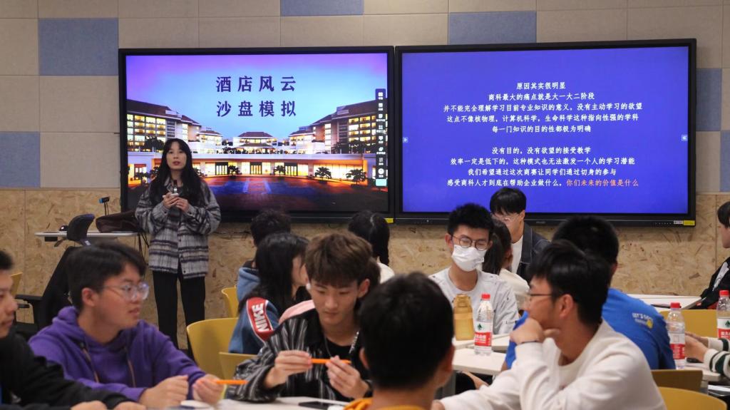 在仙林校区博文楼101教室举办了为期三天的“酒店风云,模拟沙盘”活动。活动由高顿教育市场部负责人王刚老师全程指导。通过前期全院范围内遴选产生的六组团队参与了此次比赛角逐。