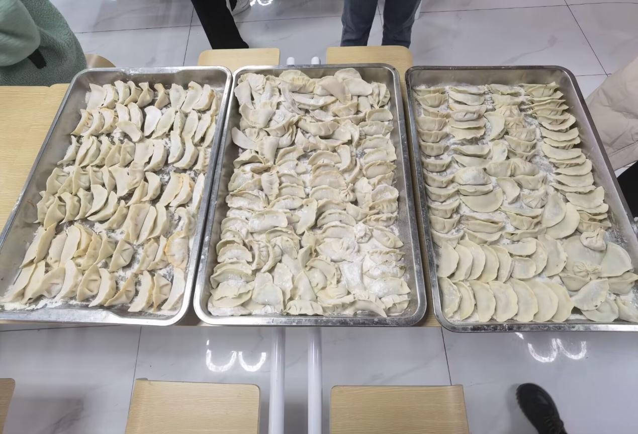 本次活动分为准备工作、包饺子、分享交流三个环节。同学们一起将饺子皮、饺子馅、擀面杖等所需物品摆放整齐,五彩缤纷的饺子皮仿佛一道道传递着冬日温暖的彩虹桥。同学们分工明确,一起发挥创造力,包出了小鱼、小兔子等各种外形可爱,充满奇思妙想的饺子。当热气腾腾的饺子端上来的时候,大家的心里也暖暖的。大家边吃边聊,分享着动手劳动的快乐和发生在身边的趣事。