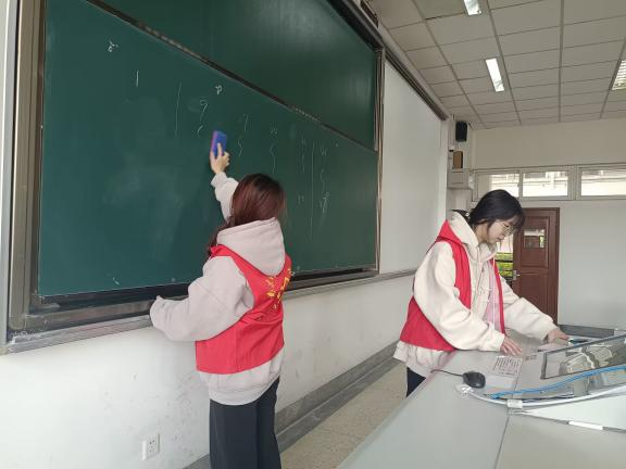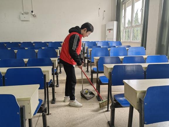 团委组织同学分别在教学楼和专业楼内开展考场义务清扫活动。志愿者们有序开展清洁工作,他们个个干劲十足,不怕脏、不怕累,分工合作,对考场进行全面清洁:将桌肚里的垃圾以及地上的纸屑全部清扫干净。将考场的课桌排列整齐,对坏的椅子进行了更换。经过大家的努力,考场卫生环境得到了改善,为大家营造了整洁、卫生的考试环境。