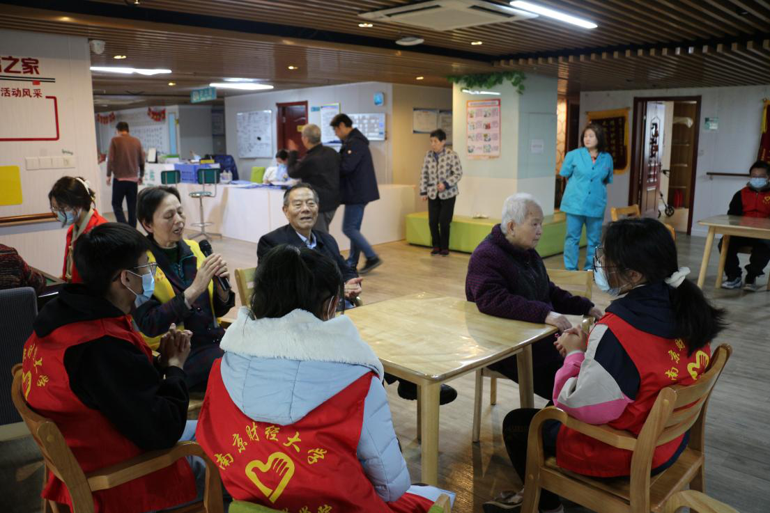 志愿者们陪伴老人聊天