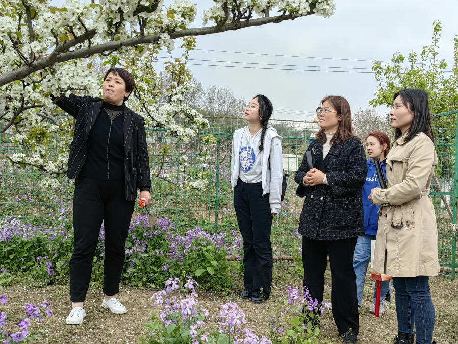 签约授牌仪式后,两院学生代表们在工作人员的带领下参观了桦墅村农家书屋和果园。工作人员为同学们详细讲解了农作物种植知识并手把手指导同学们铲土、除草、播种,同学们以小组为单位将象征着希望和温暖的太阳花种子一一播种。无论是独立完成或是合作种植,在播种的过程中,同学们不怕苦、不怕累,全身心地体会劳动的光荣和快乐,大家将劳动的喜悦与无限期待随着种子一同埋入土中,期盼着在不久的将来孕育出勃勃生机。