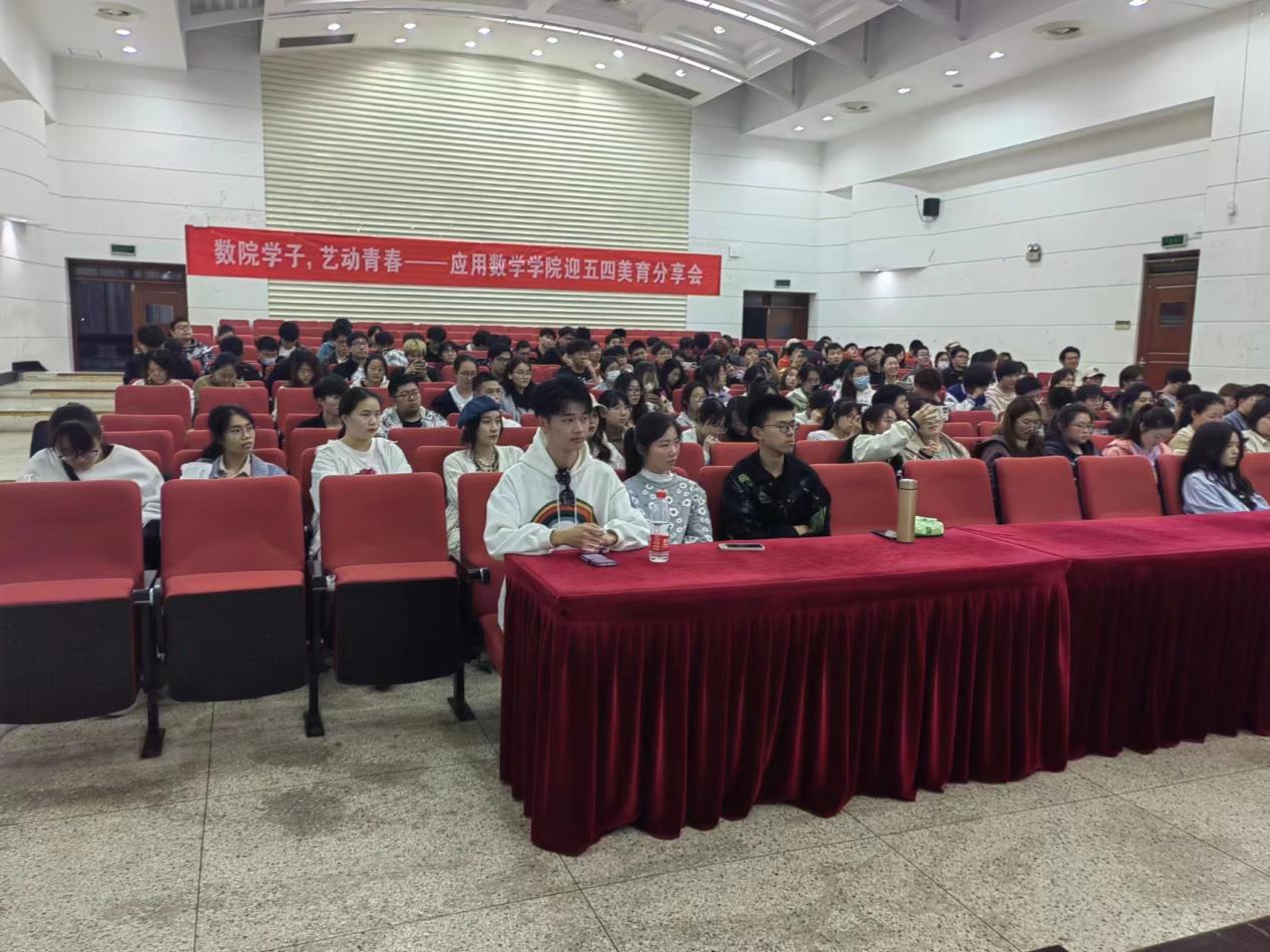 于4月27日晚在仙林校区专一报告厅举办“数院学子,艺动青春”迎“五四”美育分享会。分享会由金数2202班周鹏浩、李天妍主持,看球直播
