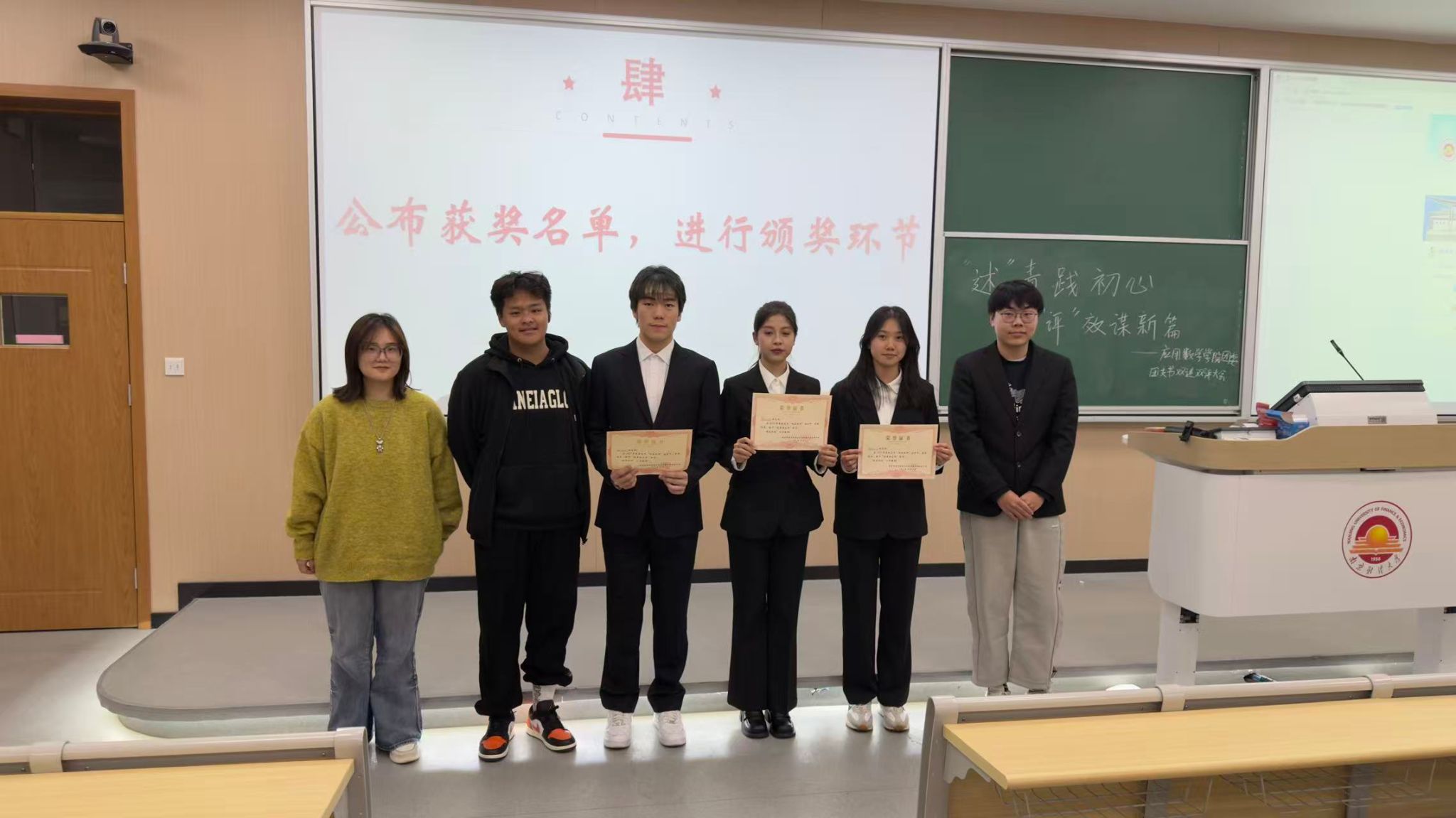 经过前期材料评审、现场评委及观众投票的综合评定,最终评选出数学2501、数学2301、金数2501三个团支部为优秀团支部,金数2301张之恒、数学2301刘淑敏、金数2401周文利三位团支书为优秀团支书。评委嘉宾为获奖的团支部以及团支书颁发证书与奖品,并合影留念。