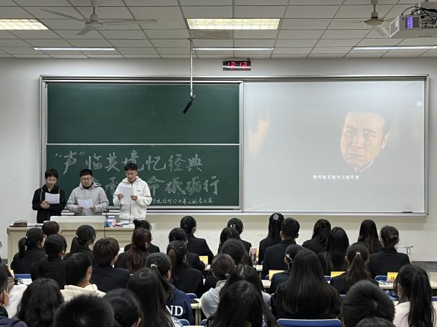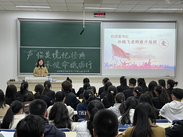 11月16日中午,看球直播 在德业楼117教室开展以“‘声’临其境忆经典,传承使命砥砺行”配音大赛暨主题信仰公开课。看球直播 团委书记孙晓飞、院团委全体成员和各年级学生代表参加了活动。
