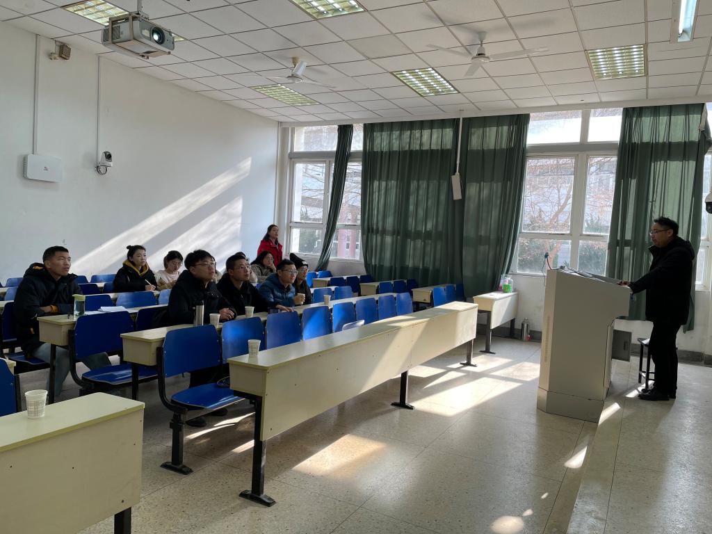 相关教师和研究生参加讲座,讲座由足球比赛直播