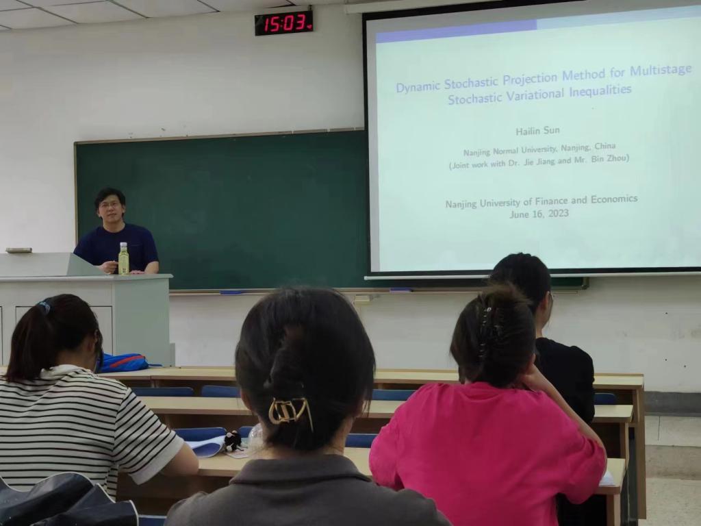 孙海琳教授在德经楼202作了题为“Dynamic Stochastic Projection Method for Multistage Stochastic Variational Inequalities”的学术讲座。足球比赛直播