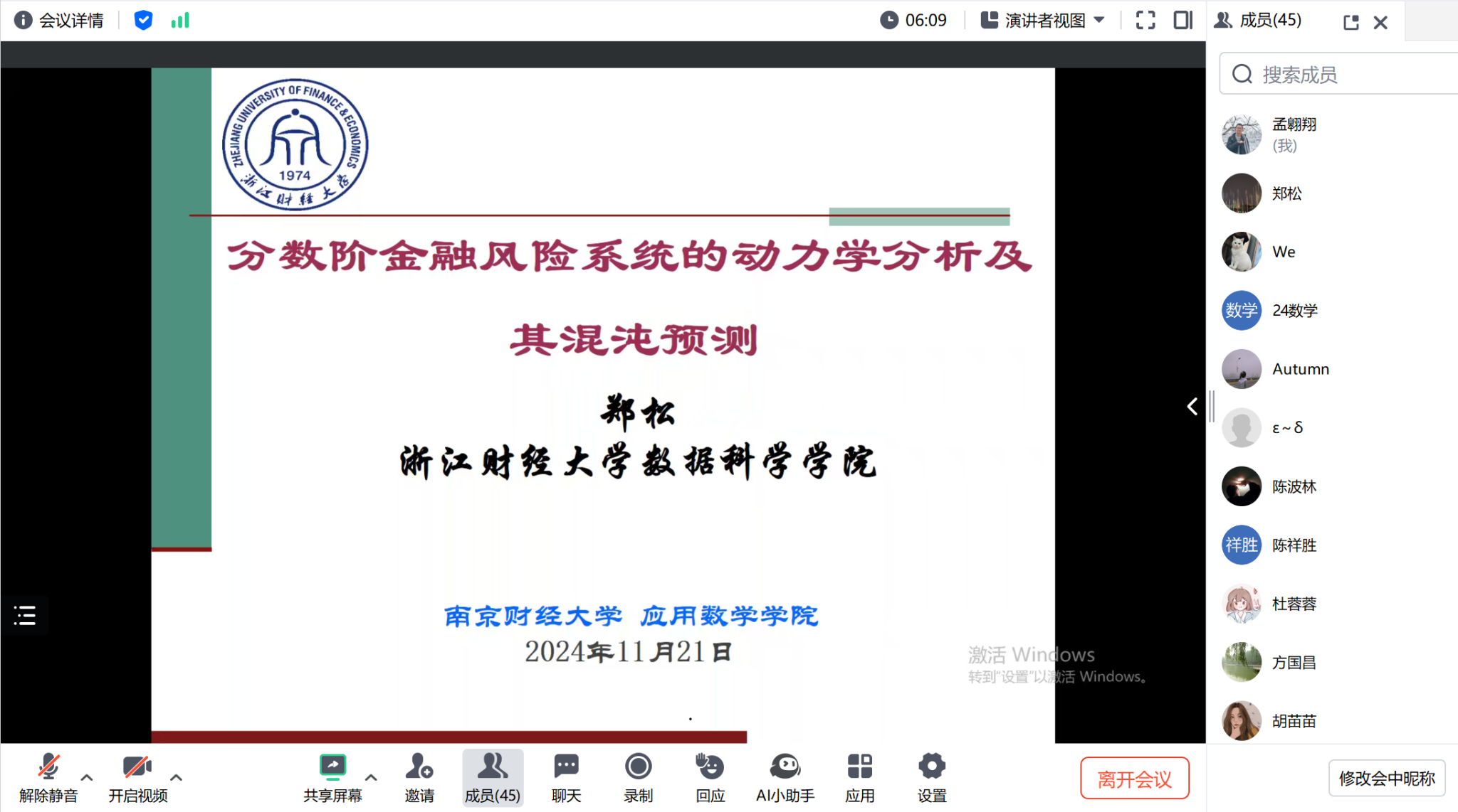 邀请,浙江财经大学郑松教授通过腾讯会议作了题为“分数阶金融风险系统的动力学分析及混沌预测研究”的学术讲座。足球比赛直播
