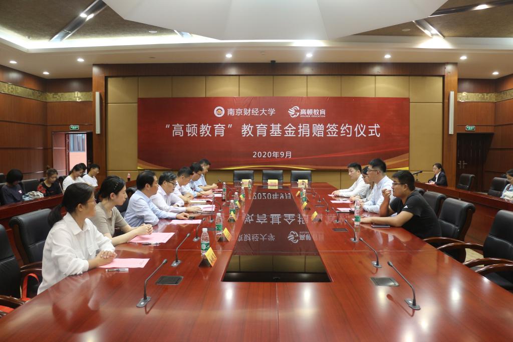 9月30日下午,“高顿教育”教育基金捐赠签约仪式在仙林校区工科楼二楼报告厅举行。党委常委、副校长华仁海,高顿教育集团联合创始人、副总裁王贤瀚,南京分公司总经理谢斌,高校合作高级经理张美娟,南京分公司仙林分校负责人何伟等出席签约仪式。我校对外联络处、足球比赛直播