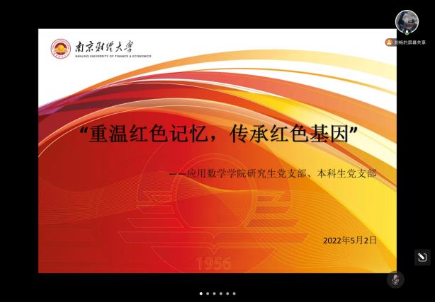 为推进党史学习教育常态化长效化,进一步激励青年继承和弘扬五四精神,4月30日至5月2日,南京财经大学足球比赛直播 借助“腾讯会议”网络平台,举办了以“重温红色记忆,传承红色基因”为主题的“纪念五四青年节”系列党日活动。足球比赛直播 研究生党支部和本科生党支部成员及党的发展对象参加了此次活动,活动由研究生党支部书记王成老师主持。