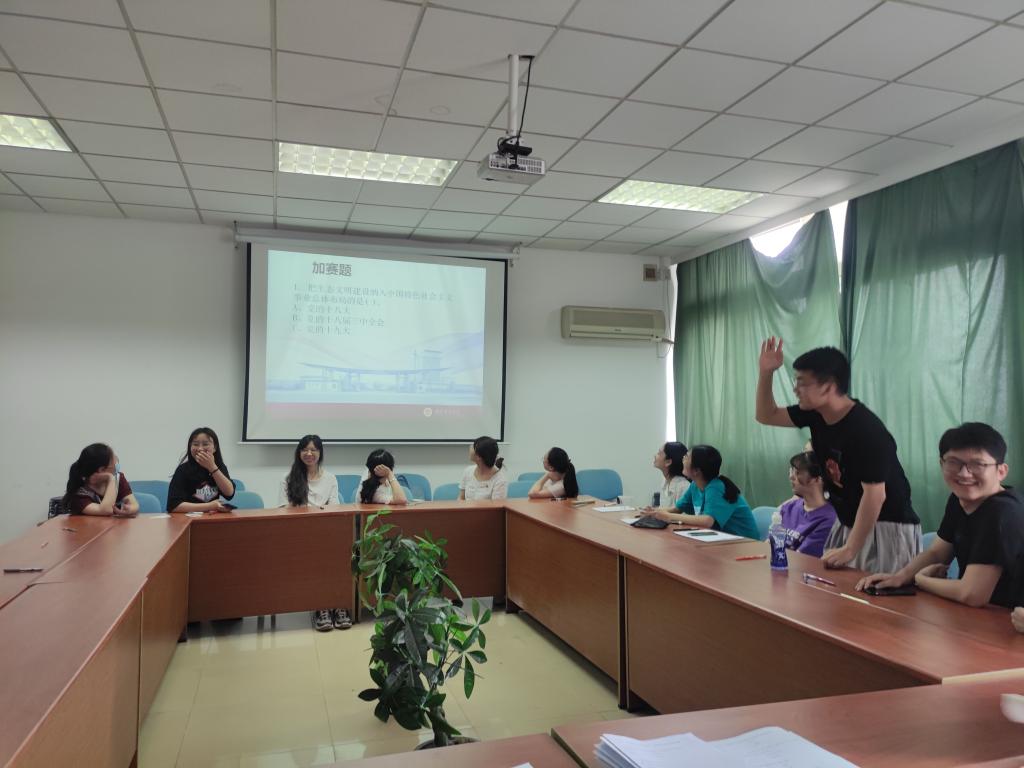 竞赛分两个部分,第一部分为笔试形式,内容涵盖中国共产党成立百年来的革命史、新中国史、改革开放史、社会主义发展史等,全面考察支部全体党员党史学习教育阶段性的学习成效。作答完毕之后,现场由同学们互相批改计分,重新温习知识的同时彼此互相勉励。第二部分现场竞答环节,ppt展示题目,现场举手抢答。各位党员同学积极举手做答,整场竞赛气氛严肃热烈。经过激烈角逐,综合笔试环节和抢答环节的表现,评选出了一二三等奖。同学们纷纷表示受益匪浅。