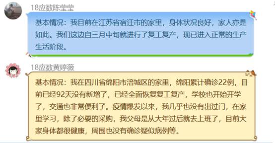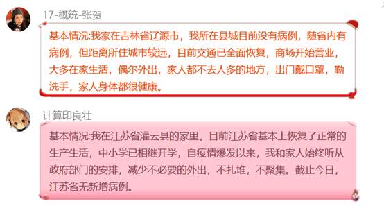 活动第二项,支部全体党员在支部QQ群中开展群聊,各自介绍住所地的防疫情况以及自己和家人的基本情况。