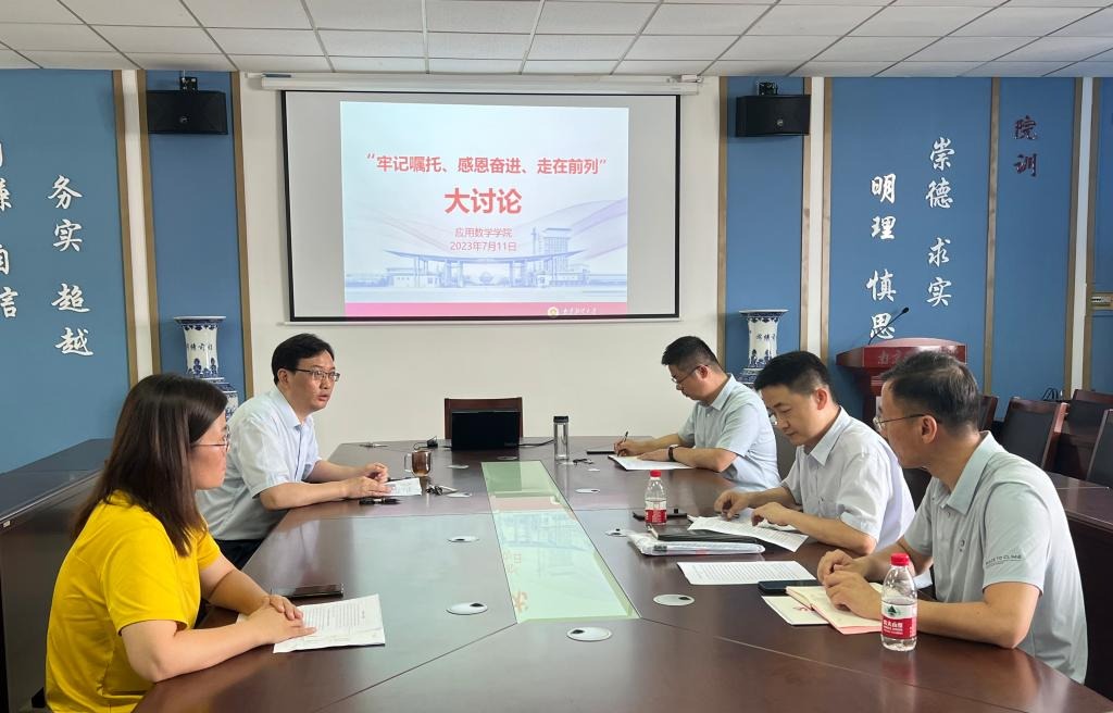 在德业楼508会议室组织开展“牢记嘱托、感恩奋进、走在前列”大讨论。全体院领导、全体党总支理论学习中心组成员参加大讨论。大讨论由院党总支书记殷建新主持。