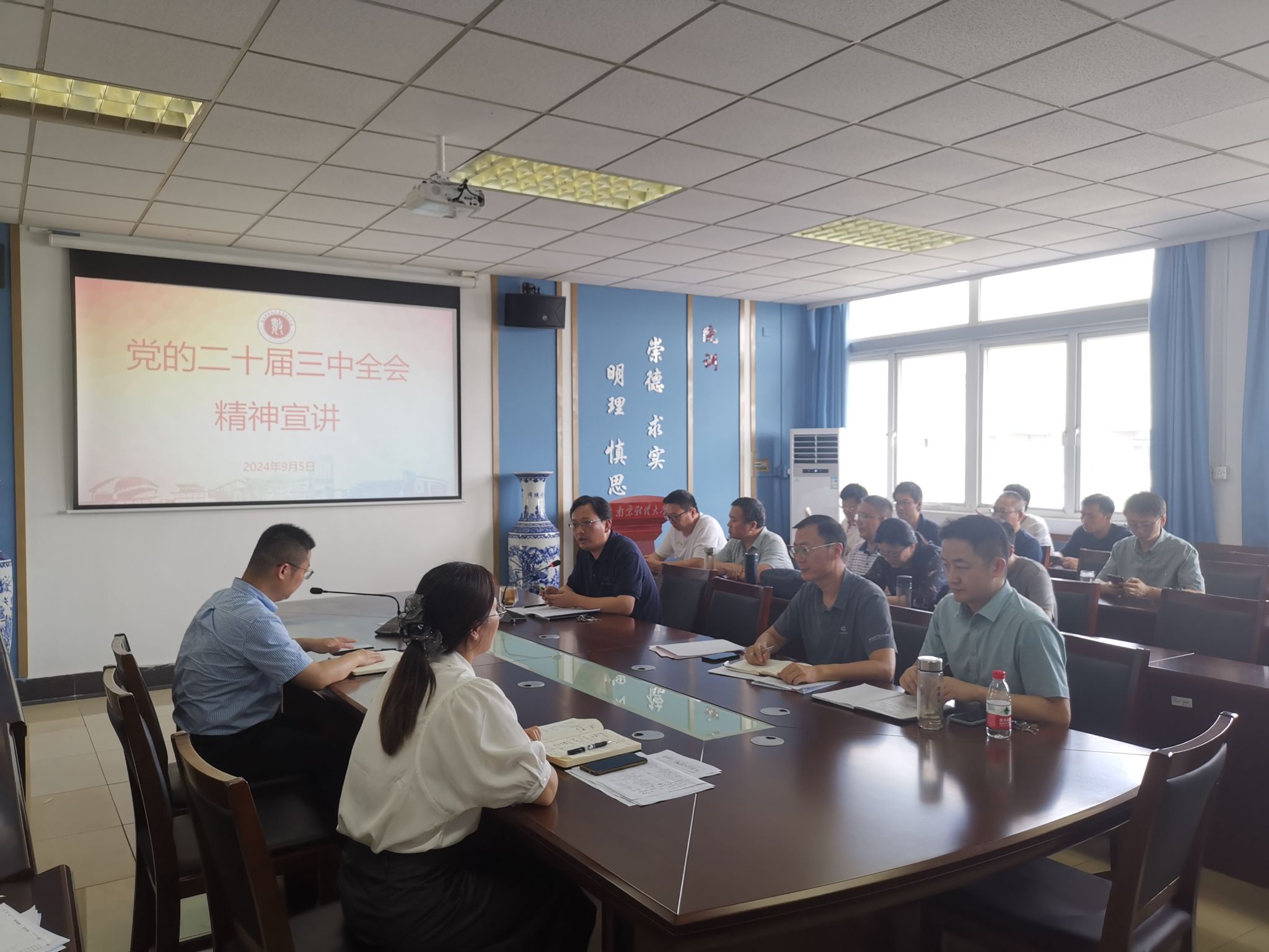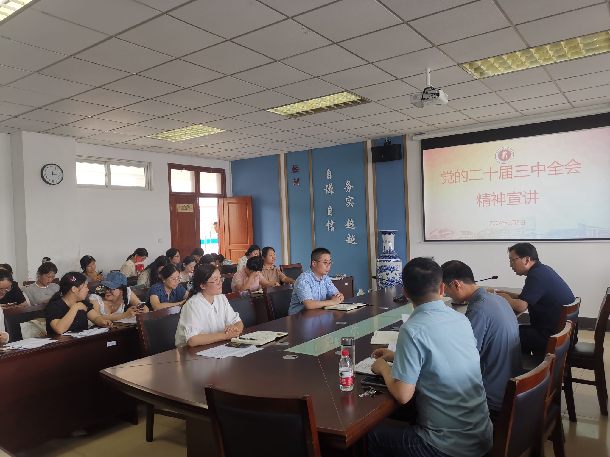 党委书记殷建新围绕深入理解党的二十届三中全会的重大意义、深刻领会习近平总书记重要讲话精神、全面把握《中共中央关于进一步全面深化改革、推进中国式现代化的决定》提出的重大举措、全力以赴抓好全会精神贯彻落实等四个方面进行了宣讲。会议强调,要把学习好贯彻好党的二十届三中全会精神作为重大政治任务,认真领悟进一步全面深化改革、推进中国式现代化作出的战略部署,深入学习习近平总书记关于全面深化改革的一系列新思想、新观点、新论断,深刻领会中国式现代化的本质要求,自觉把思想和行动统一到中央及省委部署要求上来,把学习贯彻党的二十届三中全会精神与巩固拓展主题教育成果、深化党纪学习教育结合起来,与教学科研结合起来,开展课题研究,形成科研成果,推动文化繁荣、建设教育强国,用实际行动为推进中国式现代化贡献力量。