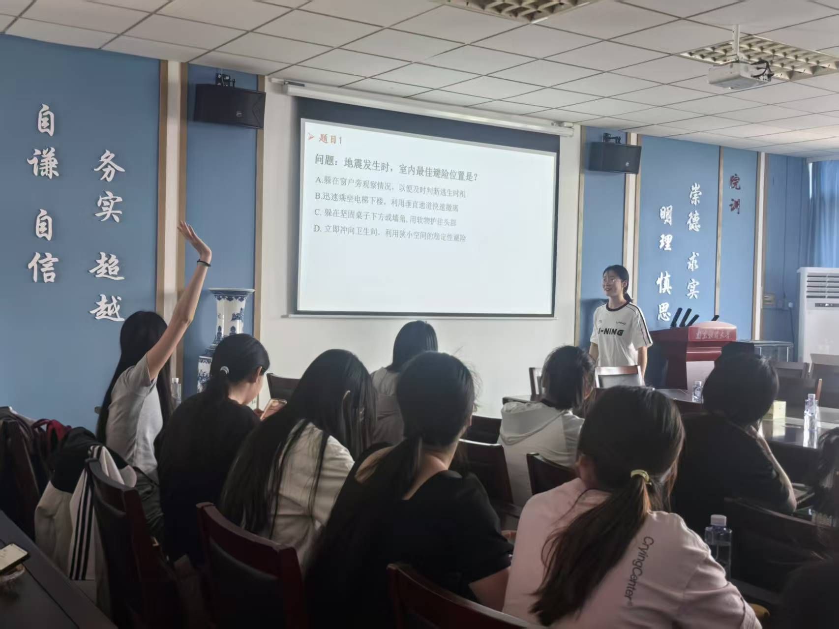 在仙林校区德业楼508会议室举办“震知灼见,安全同行”主题活动,以沉浸式学习与趣味实践相结合的方式,为师生带来一堂生动的安全必修课。