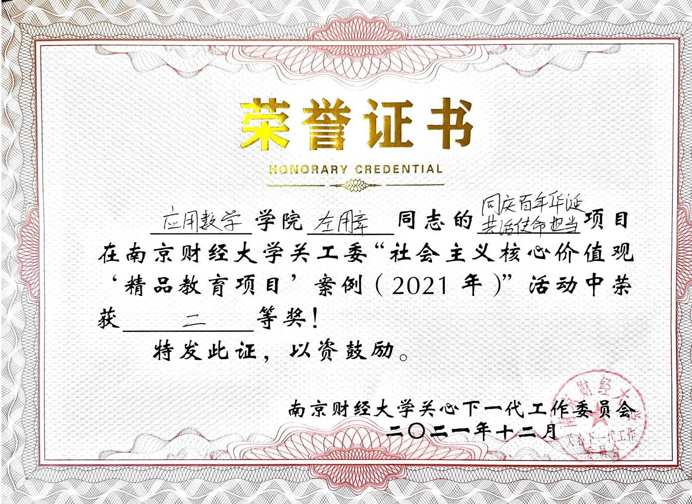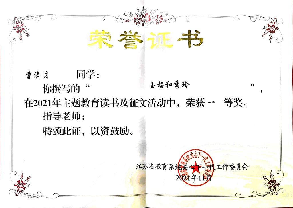 年会上,程光熙常务副主任对我校关工委今年工作开展情况作了全面系统的回顾,总结了工作成效、工作特色并指明下一步努力的方向,通报了我校关工委获省教育系统关工委先进集体等荣誉。看球直播 曹潇月同学撰写的“玉梅和秀玲”获省关工委教育读书及征文活动一等奖,“同庆百年华诞 共话使命担当”获校“社会主义核心价值观‘精品教育项目’案例”二等奖,“红色凝聚力量 榜样引导成长”获校“工作创新奖”三等奖,“聆听王老入党初心,共话建党百年历史”获校“读懂中国”征文活动二等奖,“玉梅和秀玲们”获校“主题读书征文”活动一等奖,“‘疫’无反顾 先锋同行”获校“主题读书征文”活动优秀奖。