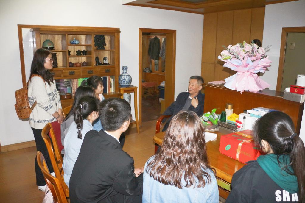 的一群师生匆匆忙忙地赶到学校南门,一起打车前往学校已退休副校长、老党员王水汀教授的家中,聆听王老的入党历程,共话建党百年历史。