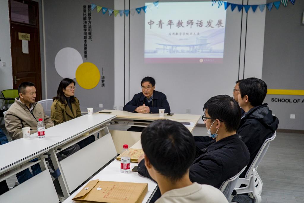 在德业楼534教工之家举办中青年教师话发展座谈会。会议由院党总支书记殷建新主持,中青年教师代表参加会议,张从军教授受邀进行指导交流。