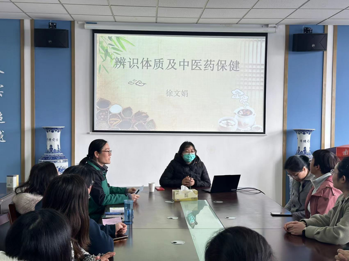徐文娟医师介绍了人的体质包括平和质、气虚质、阳虚质、阴虚质、痰湿质、湿热质、淤血质、气郁质和特禀质。接着,她从情志调摄、饮食调养、起居调摄、运动保健、穴位保健五个方面讲述了每个体质的特点及如何调节养成好体质。讲座过程中,教职工认真听取徐医师的养生建议,并细心记录了一些与自己体质有关的内容。最后,徐医师现场为老师们把脉,并根据每个人的身体状况给出了具体调理建议。
