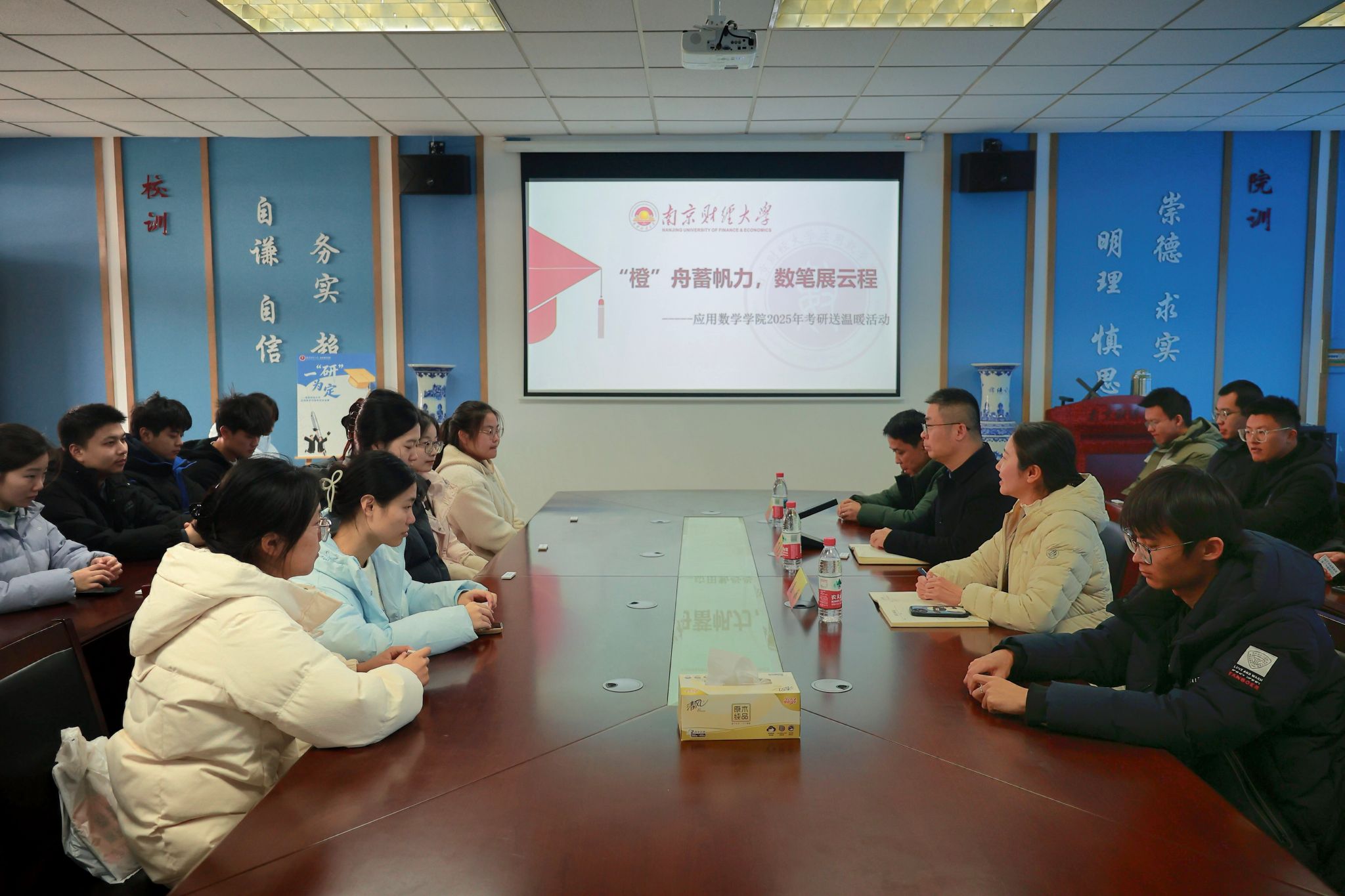 院长方国昌、学工办老师温娇、毕业班辅导员李攻明与考研学子们齐聚一堂,共赴暖冬之约。