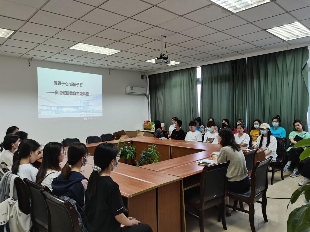 布丹丹副书记以2022年国家资助最新政策引入,让同学们了解到在近期国内疫情形势严峻、国内外环境复杂的背景下,国家仍大力推进实施国家助学贷款延期还款、减免利息等支持举措,真切感受到了国家对于经济困难学生的关爱。她号召同学们树立强大的诚信意识和感恩意识,做到最基本的诚实守信、理性消费、按时还贷等资助诚信行为,树立正确人生观、价值观,在有能力的时候用实际行动回报国家、回馈母校。同学们纷纷表示要心怀感恩、诚信处世,做一名诚实守信的实践者,把诚信教育、感恩教育转化为大学生的自觉素养与行为。