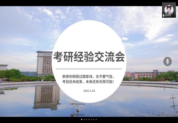研究生党支部成员、研究生党员代表及全体2022届考研学子参加了分享交流会。会议由研究生党支部副书记刘畅主持。