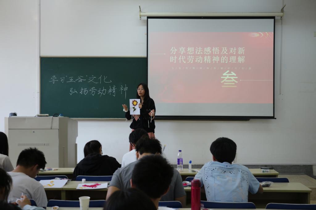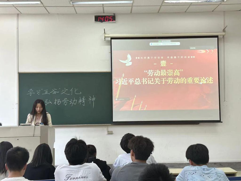 在仙林校区德业楼106教室举办了以“学习‘五谷’文化,弘扬劳动精神”为主题的庆“五一”主题活动。金数2202班班主任刘昱辰老师和足球比赛直播