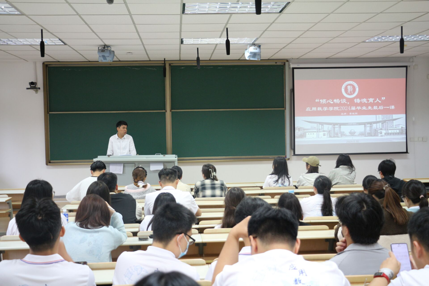 在仙林校区德正楼209教室召开“倾心畅谈,铸魂育人”2024届毕业生最后一课。毕业班辅导员李攻明从思想教育——坚定理想信念;专业学习——打下坚实基础;就业升学——规划未来方向等方面与学生倾心畅谈,引导毕业生珍惜最后的在校时光。围绕安全教育、公民道德教育、心理健康教育等方面对毕业生教育管理提出了具体要求。