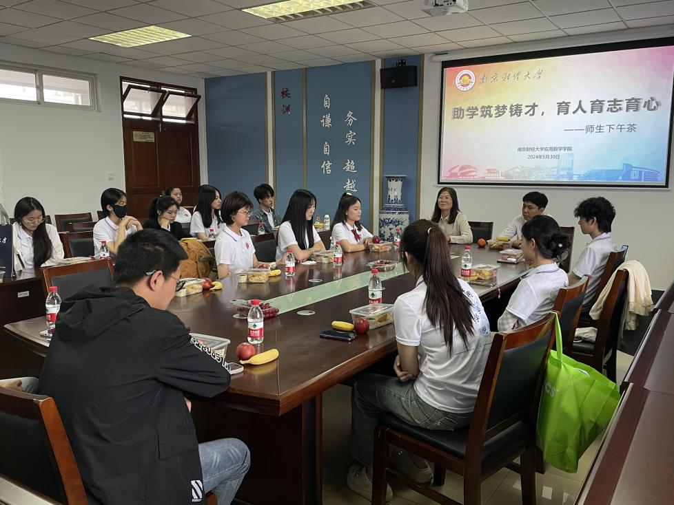 在仙林校区德业楼508会议室开展系列师生座谈。在“助学筑梦铸才,育人育志育心”师生下午茶活动中,足球比赛直播