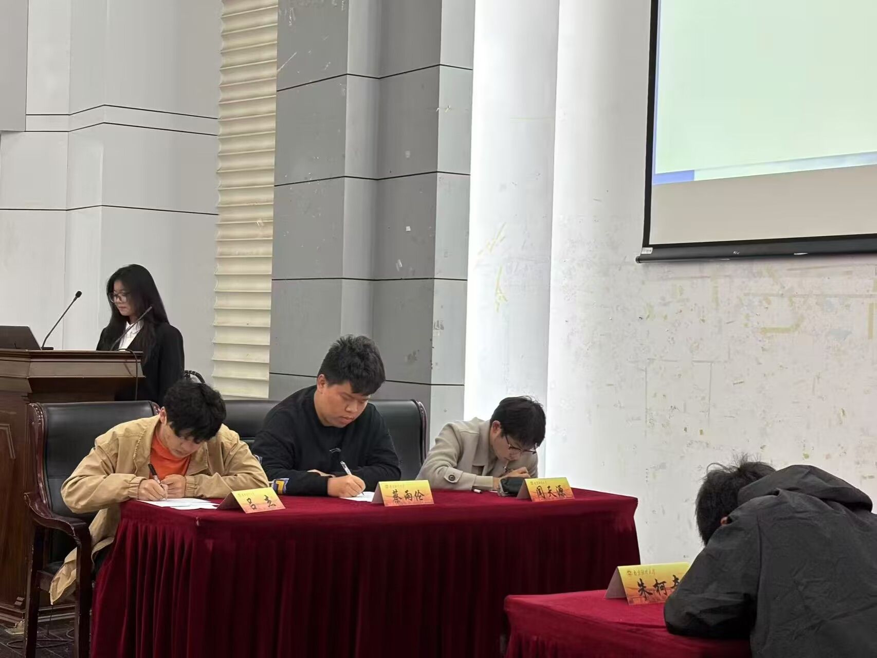 经过初赛选拔,共有6位选手进入决赛。决赛仿用瑞士轮赛制,通过抽签、计分和排名等方式,提高容错性,确保每位选手都能够在紧张激烈的比赛中充分展示自己的实力。6名选手先是分为两组进行比赛,现场选手们或眉头紧锁,沉思冥想;或笔走龙蛇,自信作答。每一道题目都是对数学深度与广度的挑战,每一次解题都是对智慧极限的突破。经过淘汰赛的激烈角逐,梅宇、蔡雨伦、闻天源,吕杰成功晋级最终PK环节。在最终PK环节,4名选手你追我赶,互不相让。经过长达四十分钟的比拼后,最终角逐出了本次比赛的前三名:第一名金数2401蔡雨伦,第二名金数2302闻天源,第三名数学2301吕杰。