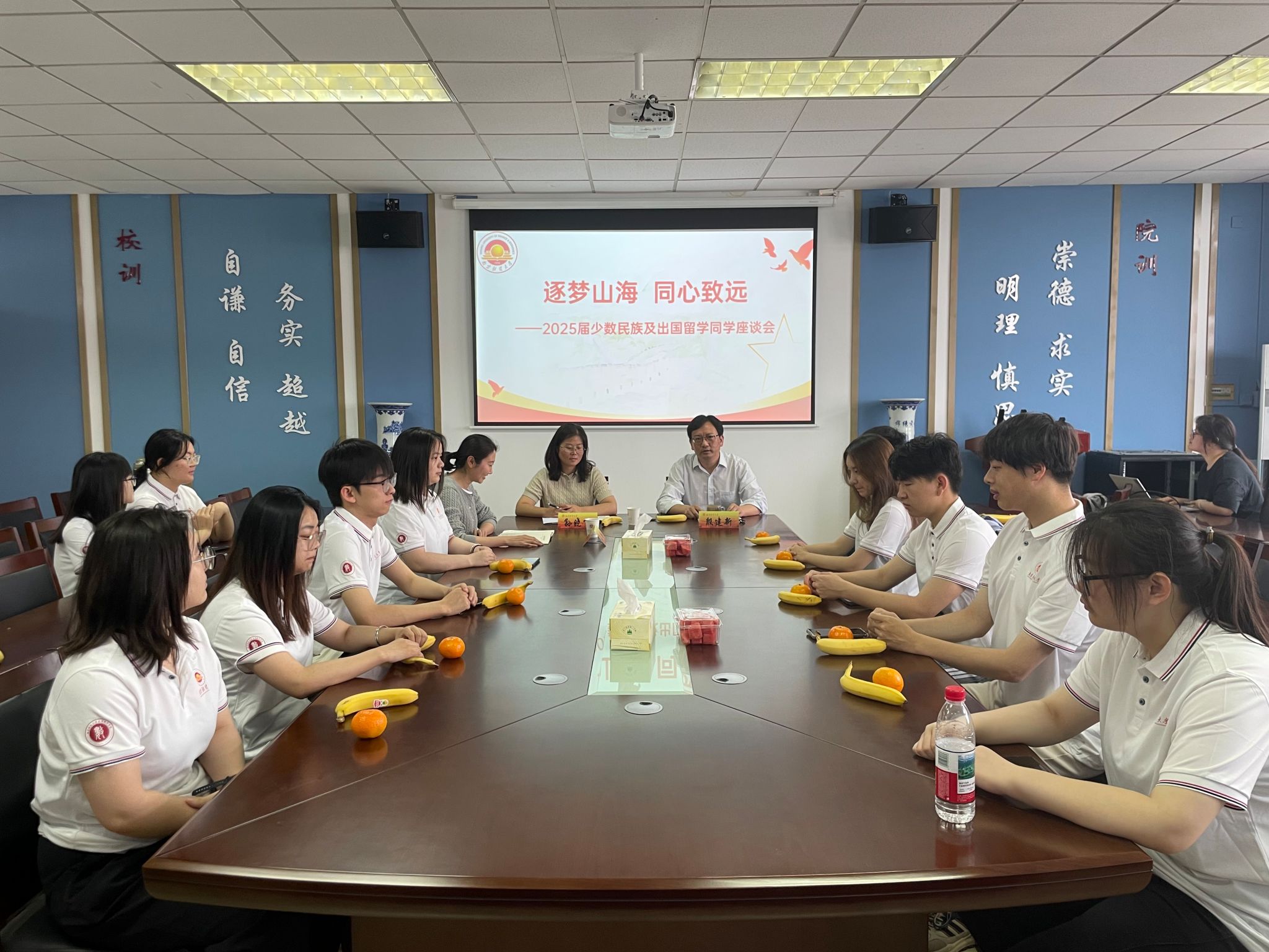 建设发展的建议。在“筑梦山海,同心致远”毕业班少数民族及出国留学同学座谈会上,殷书记指出要将爱国情怀融入血脉,自觉遵守法律法规,鼓励少数民族同学与出国留学同学积极参与多元文化交流,传播中华优秀传统文化。
