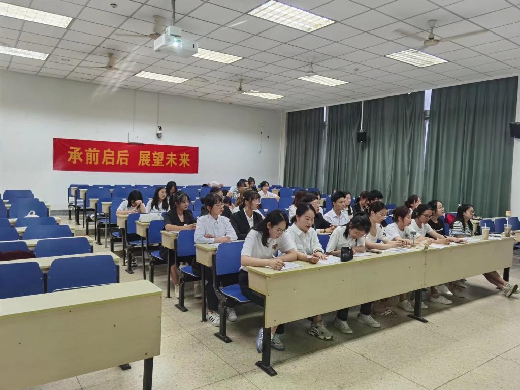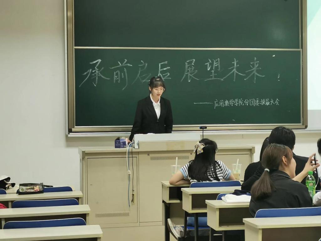 团委在仙林校区德业楼103教室举行以“承前启后,展望未来”为主题的换届大会。本次大会由办公室周晓宇和黄心怡担任主持,全体团委成员参与会议。