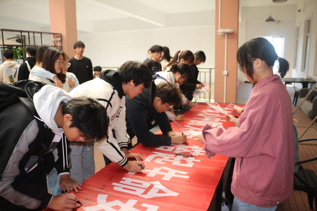 活动分为消防安全知识宣讲、消防安全宣传页分发和横幅签名三个环节。服务维权中心负责人向同学们详细讲解了火灾的成因、失火的逃生措施和灭火器的使用方法,并通过趣味问答的方式对消防安全知识进行科普强化和宣传提示,使大家深刻认识到消防安全的重要性。现场志愿者分发了消防宣传页,让同学们在提高消防安全意识的同时增强消防安全责任感。同学们认真研读手中的宣传页,真切感受到火灾潜在的危害,不时交流讨论自己的感受。现场同学纷纷在消防宣传横幅上签下自己的名字,一笔一划都承载着防灾减灾的使命感,一字一句都传达着共创安全校园的信心。
