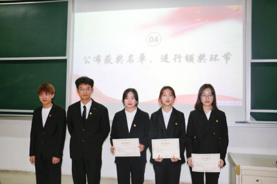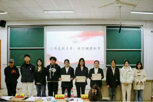 全体团支书答辩完毕后,现场观众进行投票。经过统计,评选出金数2102班陈奕名、数学2201班吴文静、数学2301班刘淑敏三位优秀团支书;金数2102团支部、金数2101团支部、数学2201团支部三个优秀团支部。获奖团支书及获奖团支部代表上台领奖,合影留念,会议圆满结束。